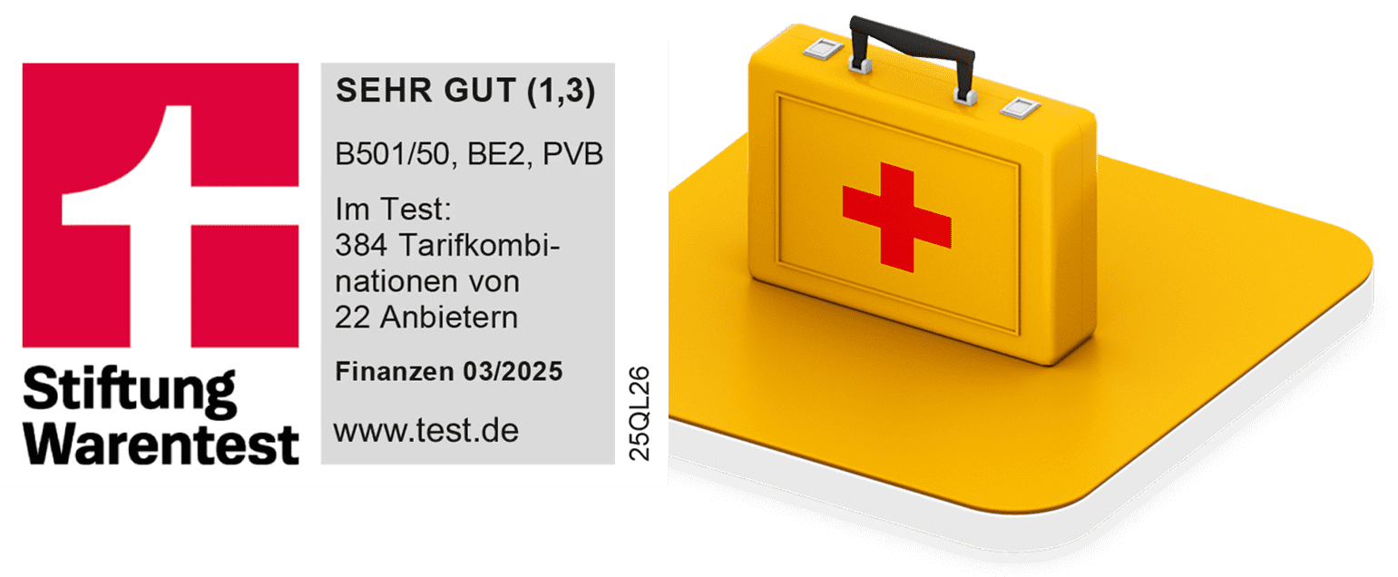 Anders als in der gesetzlichen Krankenversicherung können Sie in der privaten Krankenversicherung - je nach Höhe des Beihilfeanspruchs - den erforderlichen prozentualen Anteil absichern. Außerdem genießen Sie als Privatpatient bei der HUK-COBURG leistungsstarke Gesundheitsvorsorge, unter anderem umfangreiche zahnärztliche Versorgung für Zahnbehandlung und Zahnersatz, ambulante Psychotherapie und Sehhilfen.